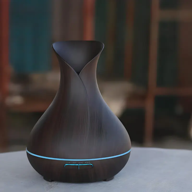 Aroma difuzer vaza model tri se uklapa u svaki enterijer zahvaljujući formi vaze i teksturi drveta. Minimalistički izgled ne zauzima mnogo prostora na polici, komodi ili radnom stolu. Diskretno LED osvetljenje stvara prijatnu atmosferu, a po potrebi može potpuno da se isključi za tamne prostorije i dečje sobe.