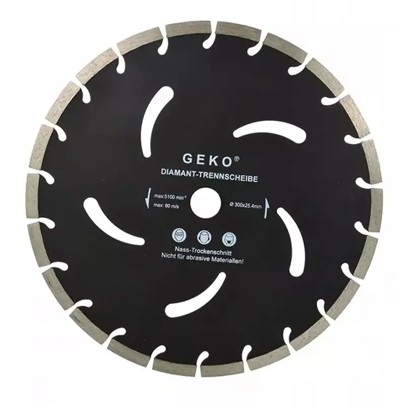 GEKO proizvodnja obezbeđuje kontrolisan kvalitet svake serije, uz stroga testiranja balansiranja i otpornosti segmenta. Disk je odličan izbor za granit, mermer, beton, ciglu, blok, crep i kamen, kao i asfalt i armirani beton. Dug vek trajanja smanjuje troškove i učestalost zamene potrošnog materijala.
