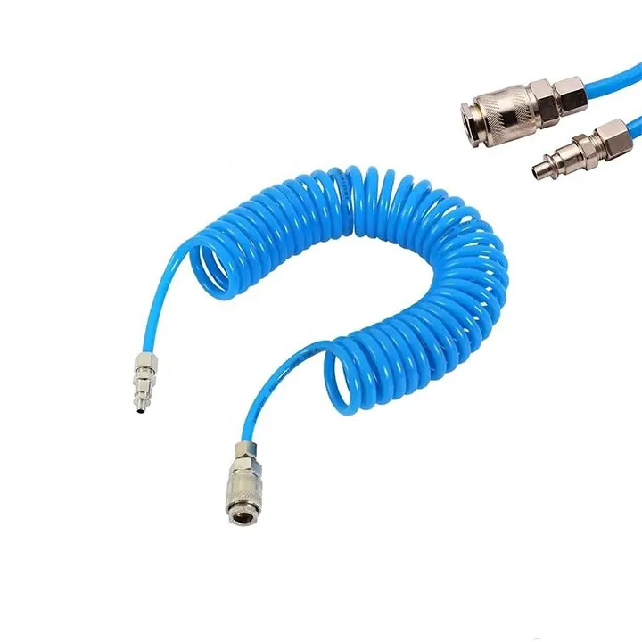 Fleksibilno spiralno crevo sa spojnicama kao spiralno crevo za kompresor (fleksibilno crevo kompresora, spiralno crevo kompresora, spiralno vazdušno crevo), pneumatsko crevo sa spojnicama (crevo sa brzim spojnicama, crevo sa brzim priključkom, crevo sa brzom spojkom), spiralno crevo za pištolj (crevo za pištolj za pumpanje, crevo za vazdušni pištolj, crevo za napuhavanje guma), kompresorsko crevo brzo spajanje (brzo spajanje creva kompresor, brzi priključak kompresora, brze spojnice za crevo) i crevo za vazduh kompresor (vazdušno crevo kompresora, crevo za pneumatiku, crevo za vazdušne alate).