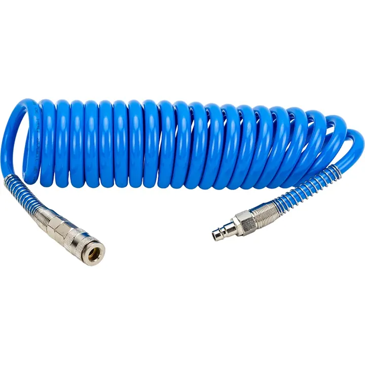 Spiralno crevo za kompresor daje domet bez petljanja i brzo se vraća u oblik.
