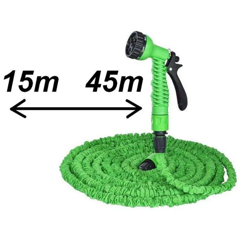 Magično rastegljivo baštensko crevo 45m donosi laganu, pouzdanu i čistu udobnost za svako zalivanje, pranje i negu dvorišta, terasa i automobila, šireći se pod pritiskom do impresivnih četrdeset pet metara, pa zatim brzo vraćajući kompaktnu dužinu posle upotrebe. Zahvaljujući izdržljivom, fleksibilnom materijalu, nema prelamanja niti mršenja, a univerzalne spojnice obezbeđuju trenutnu vezu sa standardnim slavinama i prskalicom sa više režima za jednostavno zalivanje travnjaka, cveća, žbunja i pranje dvorišta bez napora.