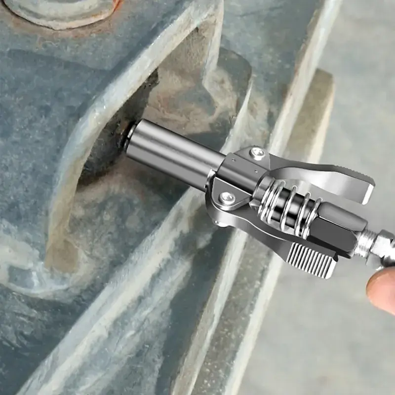 Robusna konstrukcija podnosi svakodnevnu upotrebu u servisima, na terenu i u industriji. Čvrst zahvat eliminiše klizanje i skraćuje vreme rada, pa mašine brže odlaze nazad u pogon. Kompatibilnost sa postojećim setovima produžetaka i creva smanjuje ulaganja i olakšava prelazak na efikasniji sistem podmazivanja. Izdržljivi metalni sklop i antikorozivna završna obrada.