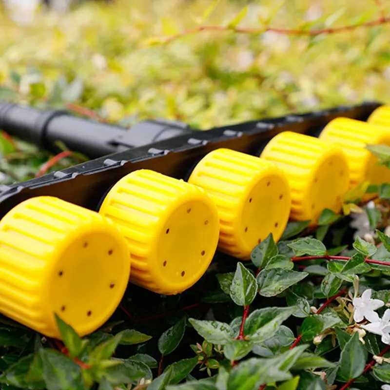 Robusna baza obezbeđuje stabilnost čak i pri višem pritisku, pa uređaj ne „šetka“ po travi. UV-otporni materijali štite od pucanja i bledenja na suncu. Dizajniran za dug radni vek, zahteva minimalno održavanje i lako se čisti, što osigurava stalno pouzdan učinak tokom sezone.