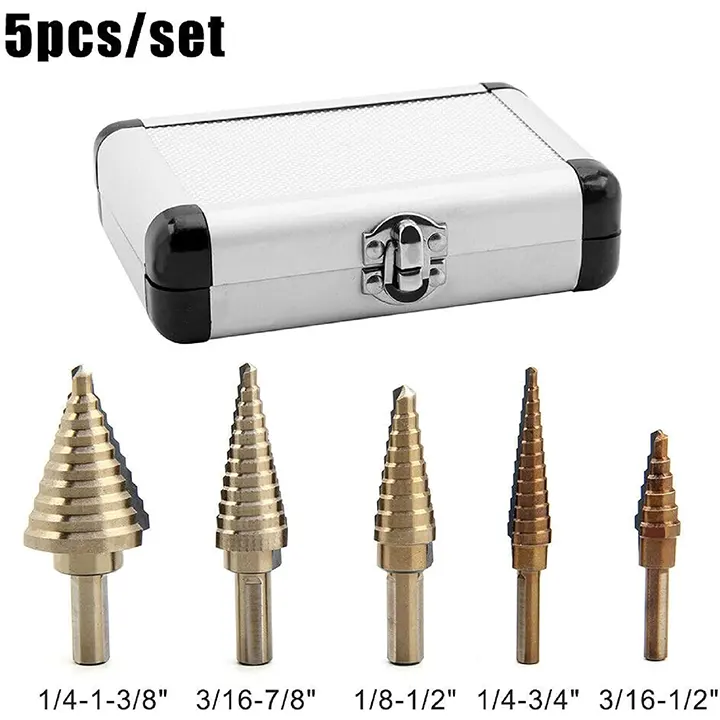 Set titanijum stepenastih burgija 5kom – Profesionalni set titanijum stepenastih burgija – 5 komada vrhunskog kvaliteta