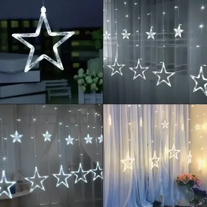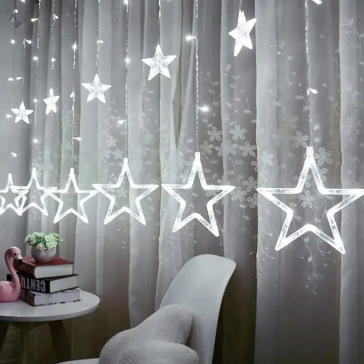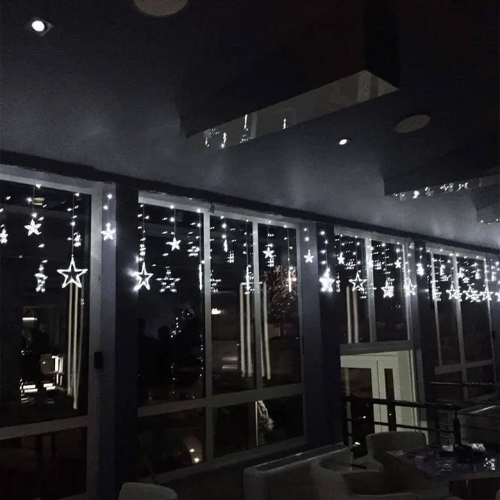 Svetleće zvezde za dekoraciju i praznične svetlosne zavese obezbeđuju luksuzan izgled.