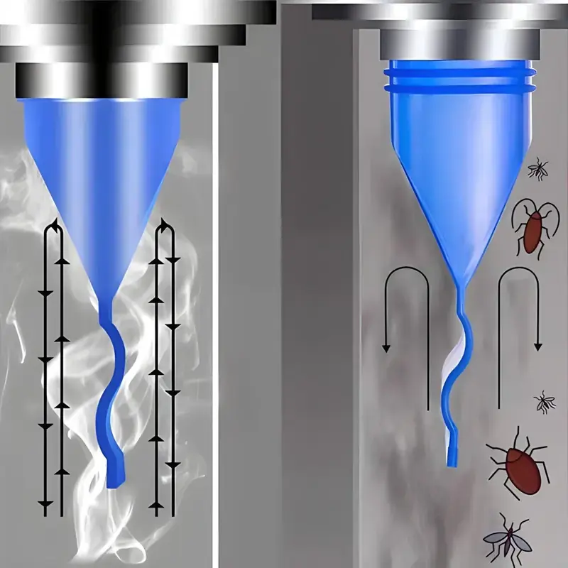 Pametni jednosmerni ventil u silikonskom telu propušta samo vodu, dok zaptiva gasove iz kanalizacije i zaustavlja sitne štetočine. Ravnomerno naleganje sprečava povratne talase i neprijatne mirise. Tokom upotrebe nema glomaznih rešetki ni začepljenja, pa kupatilo i kuhinja ostaju čisti.